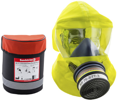 SR 77-3 er designet for å tas raskt på, og leveres i en kompakt veske som enkelt kan festes i beltet eller kjøretøy. Hetten beskytter mot partikler, gass og damp og er vedlikeholdsfri i opptil 10 år.