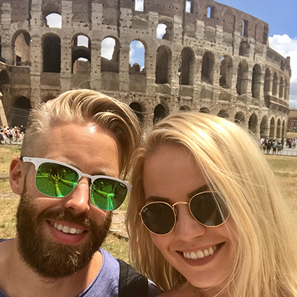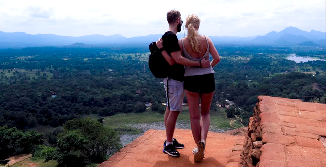 FERIE MED SAMBOER: Her sammen med samboeren Magnus på toppen av fjellet Sigiriya i Sri Lanka.