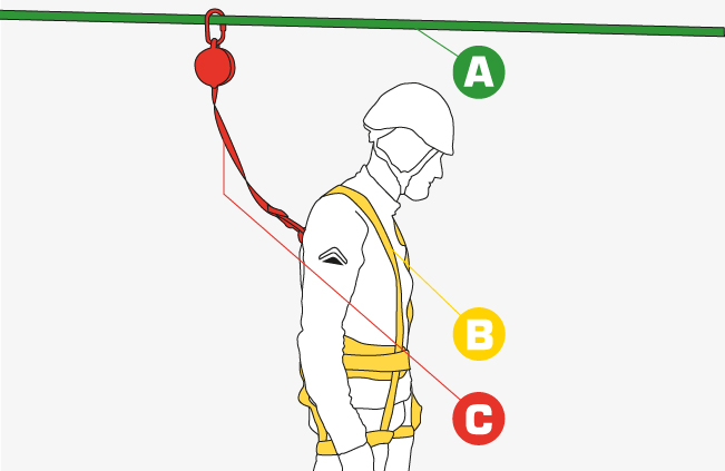 En enkel måte å huske delene i et fallsikringssystem, er å tenke «ABC» (Anchorage, Body, Connecting device). Kort sagt er ikke fallsikringssystemet komplett hvis en av delene mangler. Siden det finnes flere typer produkter, er det viktig å forsikre seg om at alle komponentene er kompatible.