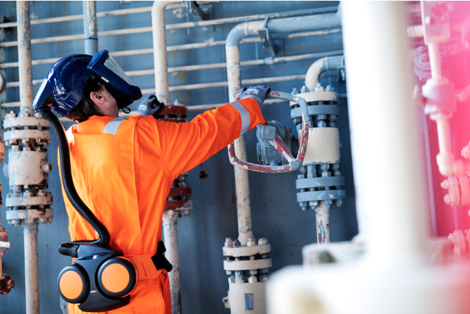 HOLDER MASKA: Skydda Norge og Vestteknikk har i en periode samarbeidet om levering av åndedrettsvern til industrien i Norge. Foto: © Vestteknikk.
