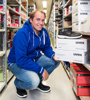 På bilverkstedkjeden MECAs norske hovedkontor på Gjøvik, har lagersjef Tor Erik Myrvold og hans team ansvaret for å holde orden på ca. 45 000 ulike varer fordelt 35000 kvadratmeter. På beina er Uvex´ nye lettvektsko blitt en fast følgesvenn.