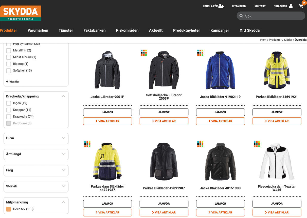 Flere av vår leverandører blant annet Textar, Blakleer, Uvex og L.Bradors klær oppfyller oppfyller Øko-tex 100 standard klasse 2, hvilket gjør materialet sikkert å ha på seg inn mot kroppen. Produkter merket Trygge Tekstiler / Oeko-Tex skal blant annet ikke inneholde allergifremkallende fargestoffer og kjemikalier. Du finner Øko-Tex sertifiserte klær ved å sortere på Miljømerking i menyen på e-handelen.