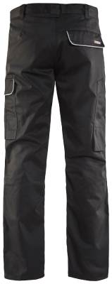 Tofarget med kontrastbise. Innstikklommer i front. Belget baklomme med klaff i kontrastfarge og knepping. Lårlomme med klaff. Tommestokklomme. Løst hengende telefonlomme, som kan festes. Cordura-forsterkede knelommer. Beltehemper. Kraftig glidelås i gylf. Knapp i linning og legg i front. D-ring for feste av ID-kortholder 2130.