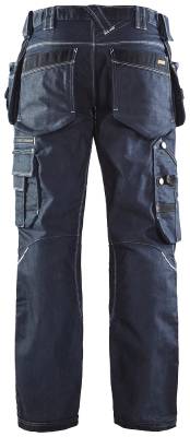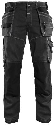 Cordura 1000 forsterkede spikerlommer, baklommer, tommestokklomme, benlommer, knær og nedkant. Gylf med knapper, forbøyde ben, avtagbar ID-kortlomme og baklommer med belg. En hemper med D-ring, og to hemper med borrelås i sidene til hammerholder. Forsterket søm foran og trenålssøm på innsiden av benet. Benlomme med glidelås, blyantlommme, telefonlomme og ID-kortlomme. Knelommer med to justeringsmuligjeter og borrelås. Sidelommer, hvor èn har ekstra lomme med glidelås. Ekstra brede spikerlommer utstyrt med verktøyhanker og ekstra verktøyrom. Ekstra bred tommestokklomme med blyantlomme og knivholder. Benenden kan justeres med snøring. Forvasket.