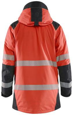 Vinterparkas i varsel, som med sin utforming og sitt quiltede fôr både varmer og hjelper deg når du er ute på jobb. Vind- og vanntett med teipede sømmer. Har forsterkninger i front og ermer, samt en romslig, behagelig og justerbar passform med ryggpanel av stretch for ekstra komfort. Kan justeres i livet og har glidelås i sidene for å forenkle og ikke begrense bevegelsesfriheten ved arbeid på huk eller på knærne. Hetten er avtakbar og tilpasset for hjelmer og øreklokker.