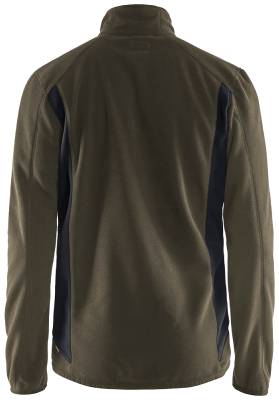 Tofarget jakke med antilobehandlet fleecemateriale. Funksjoner som to romslige frontlommer med glidelås, forlenget rygg, glidelås foran og brystlomme med glidelås og refleksdetalj.