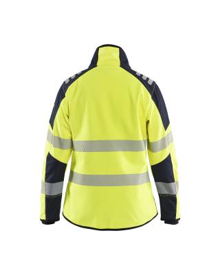 Metall- og polyesterfri softshelljakke med damepassform, i varselutførelse som er iboende flammehemmende.